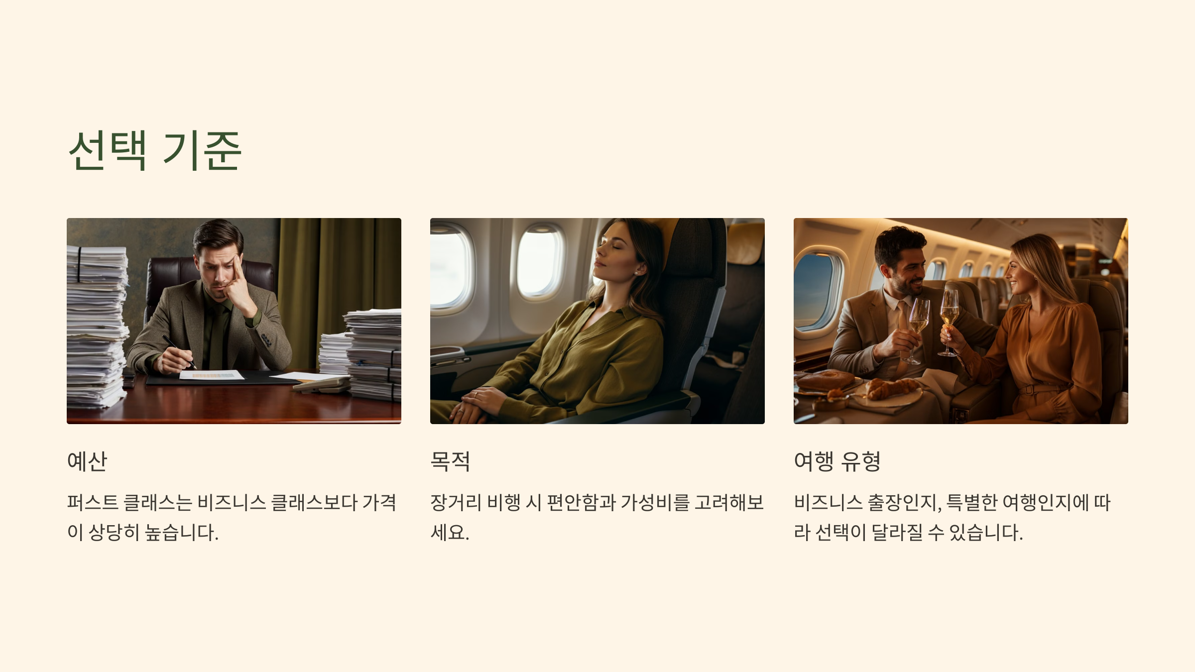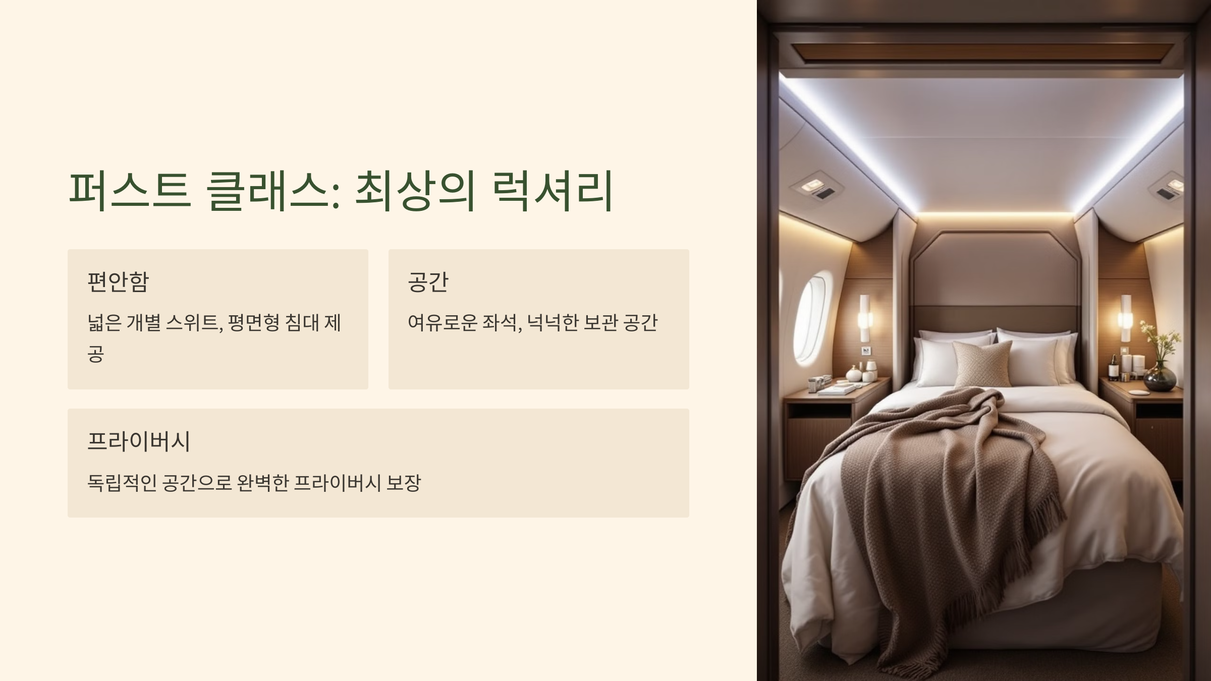 💡 퍼스트 클래스는 비즈니스보다 더 큰 프라이버시와 맞춤형 서비스가 중요할 때 선택하기 좋습니다.